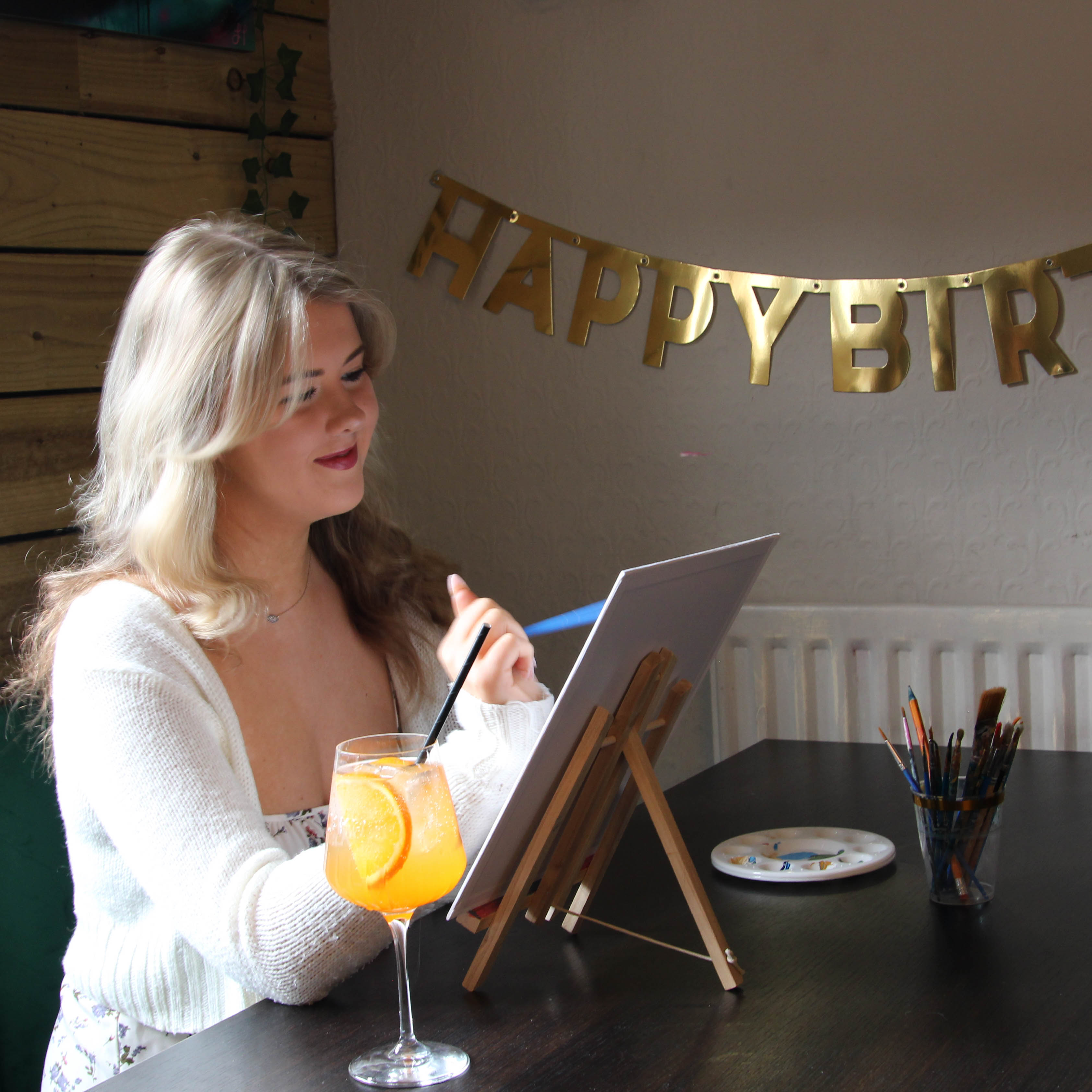 Private events are priced per person, around £12.50 for art suplies only or £20 for cocktail included. I can come to you at a location of your choice or we can find somewhere to host the event together- for example a pub or community center near you based on the type of event. I am happy to host all kinds of events for all ages, group sizes, and occasions. Where planned events are structured and decided for you, private events are more of a collaberation where you can choose the theme, painting or just colour scheme.