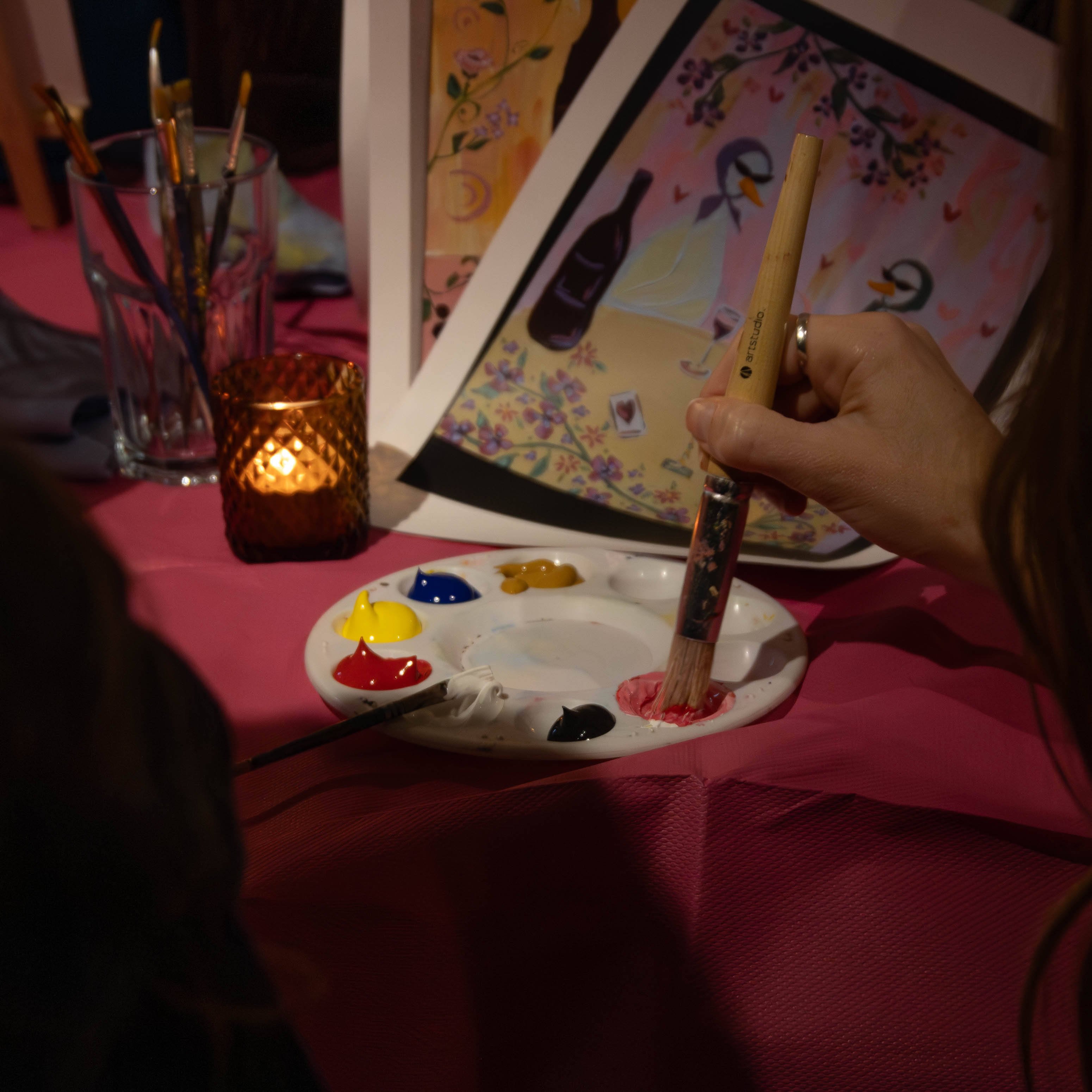 Our Sip and Paint sessions usually last 2-3 hours depending on the group size, location and artwork. We normally start at 7pm to give you a relaxed evening out but also not too late of a night!